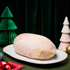 Our turkey breast roast comes trussed with an option of Truffle Stuffing.