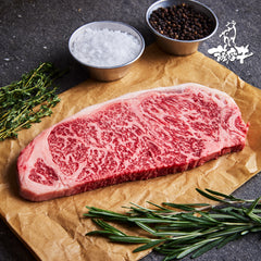 Wagyu Striploin Steak is derived from the loin set of a cattle, a suspending muscle found at the upper top section of the animal. Unlike cuts found in the thoracic and pelvic limb with abundant connective tissues. The suspended loin section is not a muscle of locomotion, resulting in a much tender piece of steak.