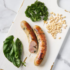 We want to introduce the Chicken Basil & Pine Nut sausage. One of our 8 artisanal sausages, creatively crafted in house with a desire to create unique taste with fresh ingredients!